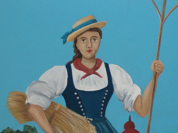 Wandgestaltung Schulungszentrum, Maibaumtafeln, Ölgemälde nach Fotovorlage